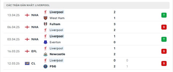 • Phong độ Liverpool