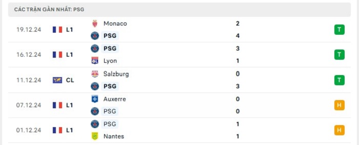 • Phong độ Paris Saint-Germain