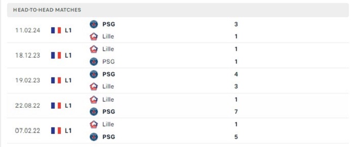 Lịch sử đối đầu của Lille vs Paris Saint Germain