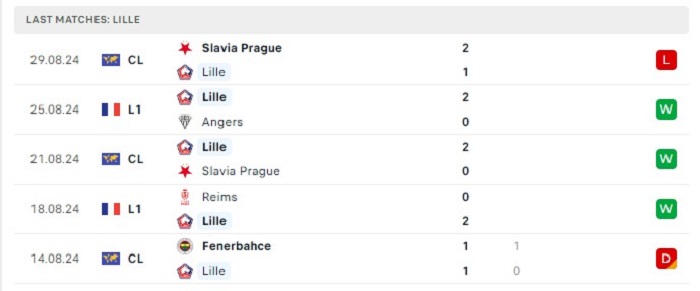 Phong độ gần đây Lille vs Paris Saint Germain