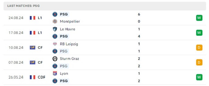 • Phong độ Paris Saint Germain