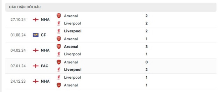 - Dự đoán tỉ số trận đấuLiverpool vs Arsenal
