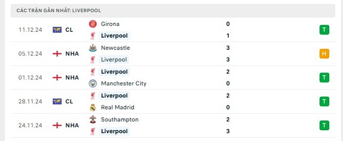 - Phong độ Liverpool