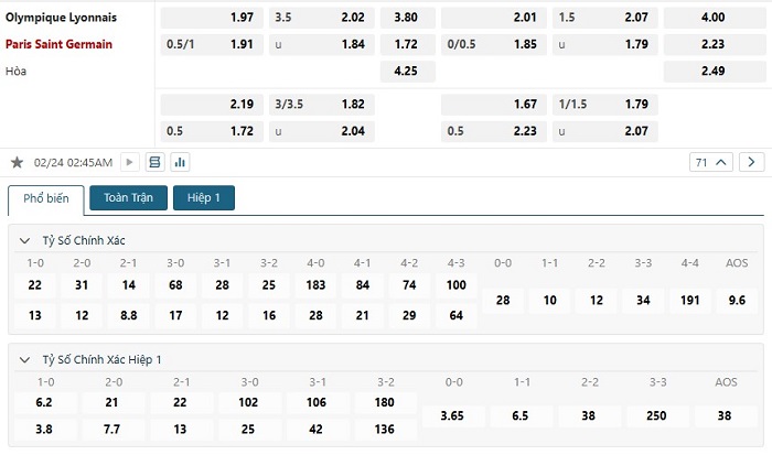 Soi kèo tỷ số Lyon vs Paris Saint-Germain