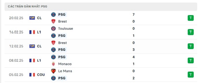 - Phong độ Paris Saint-Germain