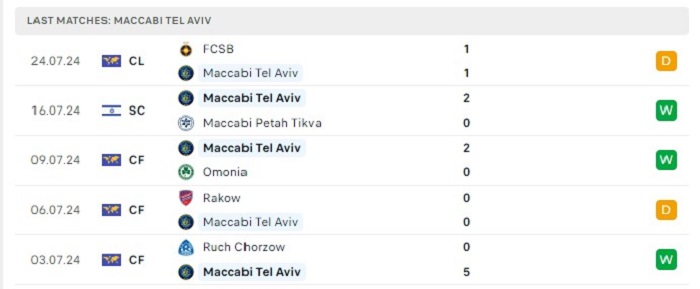 Phong độ gần đây Maccabi Tel Aviv vs Steaua Bucuresti