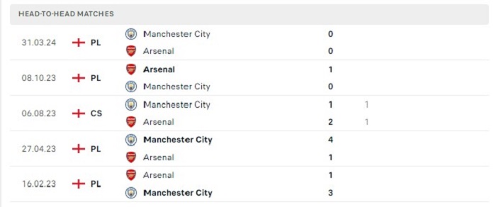 Phong độ gần đây Manchester City vs Arsenal