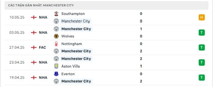 • Phong độ Manchester City