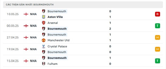 • Phong độ Bournemouth