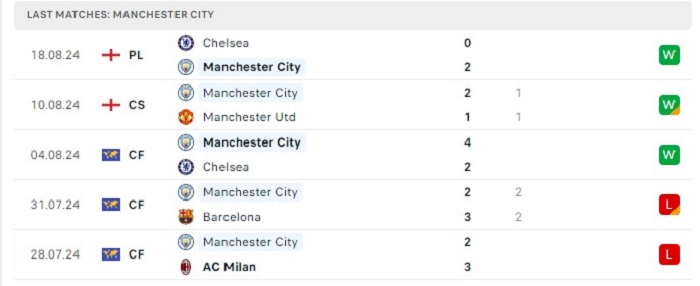 - Phong độ Manchester City