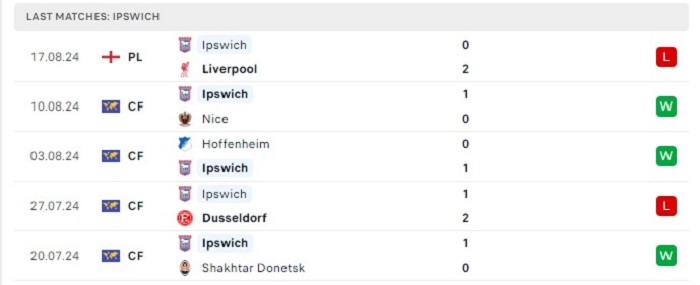 - Phong độ Ipswich Town