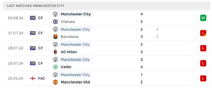 - Phong độ Manchester City