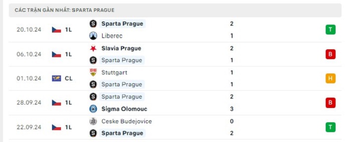 • Phong độ Sparta Praha