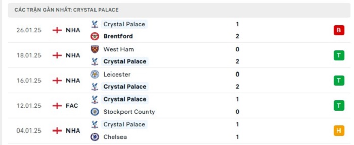 • Phong độ Crystal Palace