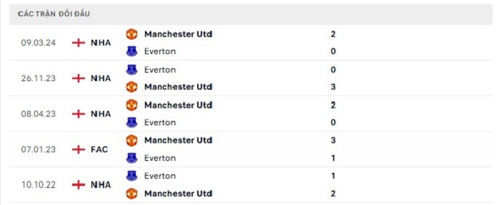 Phong độ gần đây Manchester United vs Everton