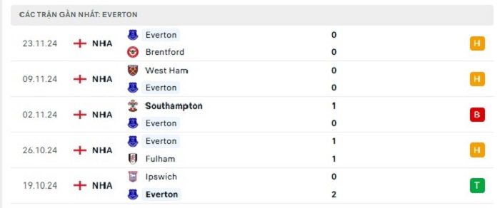 - Phong độ Everton