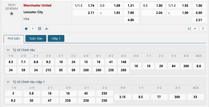 - Dự đoán tỉ số trận đấu Manchester United vs Leicester City