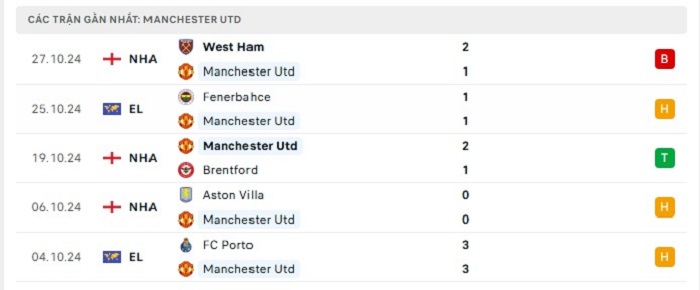 Phong độ gần đây Manchester United vs Leicester City