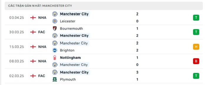 - Phong độ Manchester City