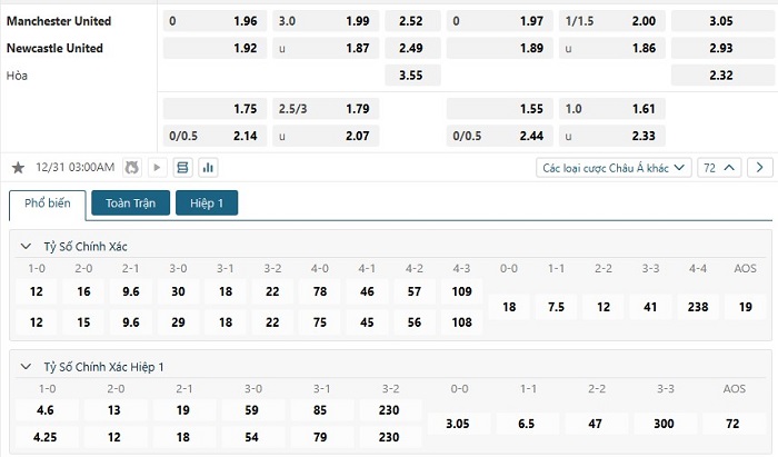 Soi kèo tỷ số Manchester United vs Newcastle
