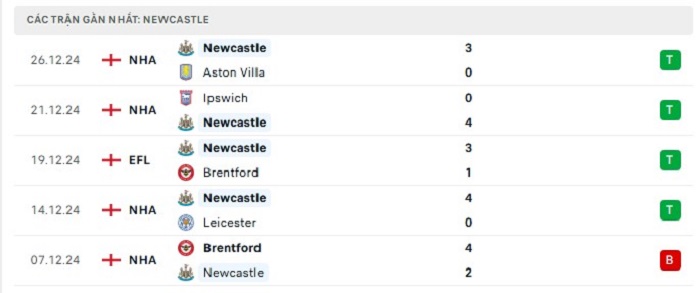 - Phong độ Newcastle