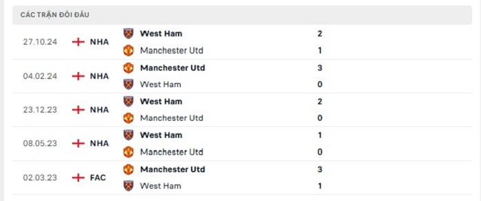 - Dự đoán tỉ số trận đấuManchester United vs West Ham