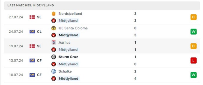 Phong độ gần đây Midtjylland vs Santa Coloma