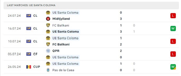 - Phong độ Santa Coloma