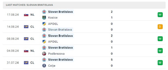 - Phong độ Slovan Bratislava