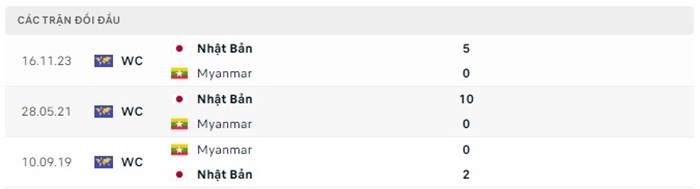 Lịch sử đối đầu của Myanmar vs Nhật Bản