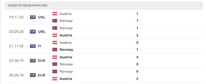 Những năm gần đây Na Uy có được sự phát triển của mình cũng bởi họ đang có một đội hình tốt với những ngôi sao sáng, nhưng dù vậy Áo cũng không phải là dạng vừa qua họ cũng cho thấy một bộ mặt đang thay đổi từng ngày của mình. Hơn nữa Áo mới là đội bóng được những thành tích tốt hơn trước Na Uy trong nhiều năm qua khi thắng 3, hoà 1 và chỉ thua 1 trước Na Uy theo mốc kèo châu Âu của trận đó, bởi vậy mà khả năng hoà kèo châu Âu của trận đấu sắp tới cũng không ngoại lệ.