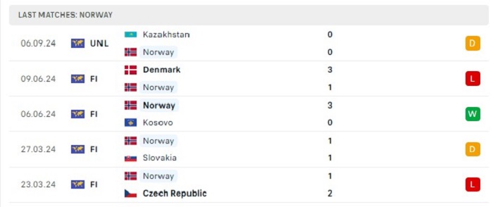 Phong độ gần đây Na Uy vs Áo