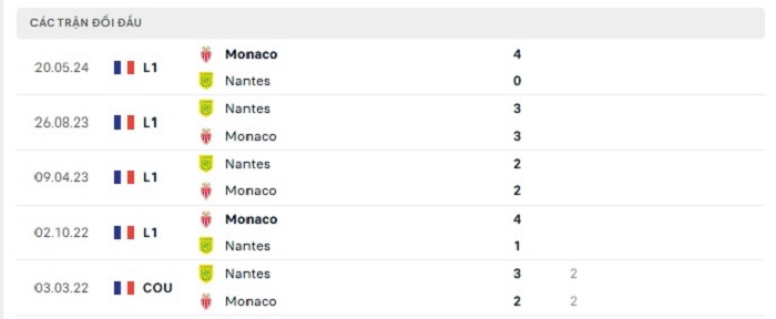 Trong quá khứ Nantes cũng từng gặp không ít những khó khăn trước Monaco, bằng chứng là trong 10 lần gặp nhau gần đây nhất của hai đội Nantes còn chưa biết tới mùi chiến thắng khi hoà 2 và thua 5 trận đấu theo mốc kèo châu Âu của trận đấu. Bên cạnh đó với Monaco ở mùa giải năm nay họ đã có cho mình được tổng cộng 9 trận thắng kèo châu Âu cả trận, do vậy mà trước Nantes vốn không được đánh giá cao hiện nay với Monaco sẽ là cơ hội để họ có cho mình được một chiến thắng tiếp theo cho mình.