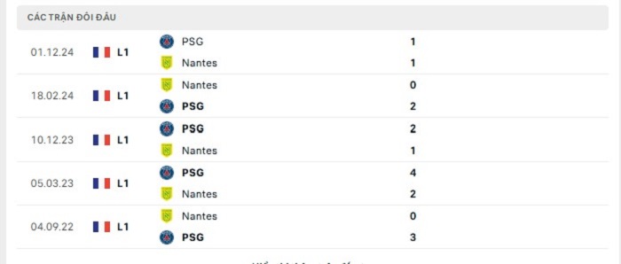 Phong độ gần đây Nantes vs Paris Saint Germain