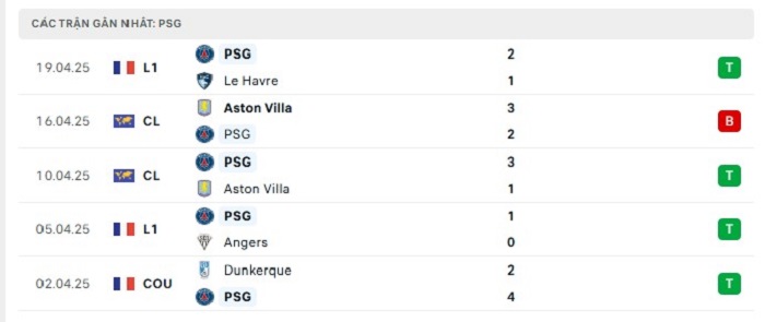 - Phong độ Paris Saint Germain
