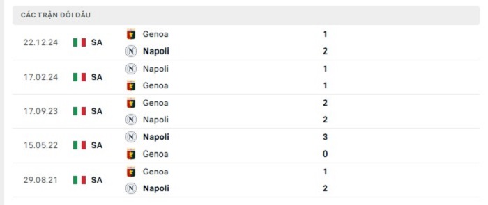 Lịch sử đối đầu của Napoli vs Genoa