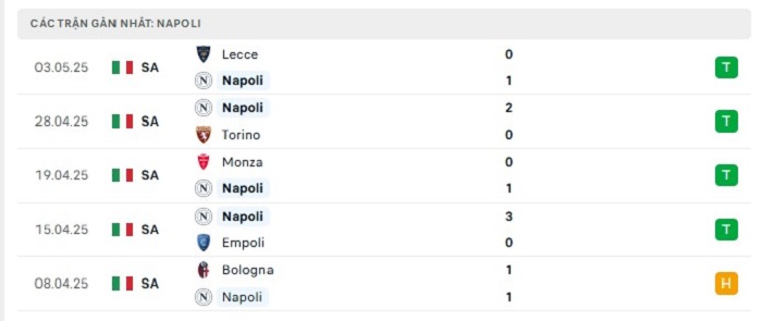 • Phong độ Napoli