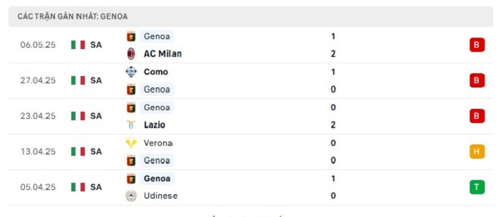 • Phong độ Genoa