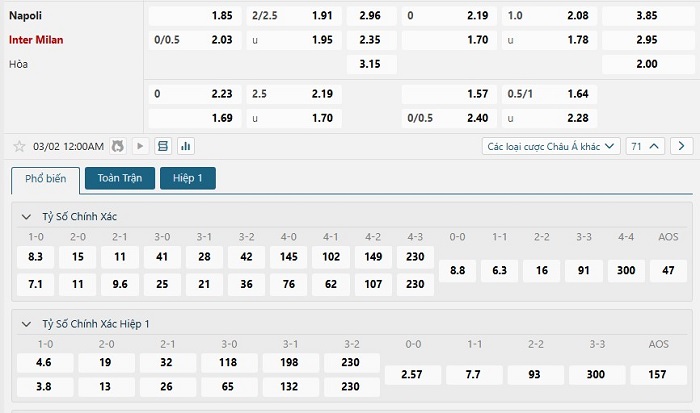 Soi kèo tỷ số Napoli vs Inter Milan