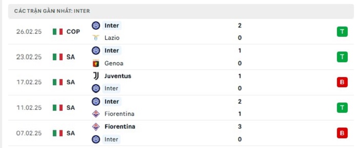 - Phong độ Inter Milan