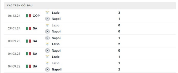 Bảng bóng đá trận đấu Napoli vs Lazio