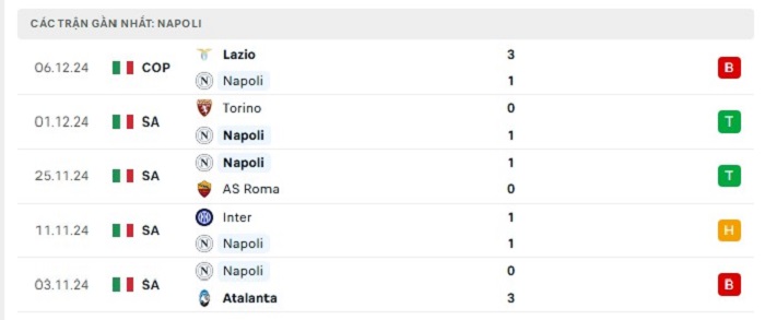 - Phong độ Napoli