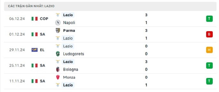 - Phong độ Lazio