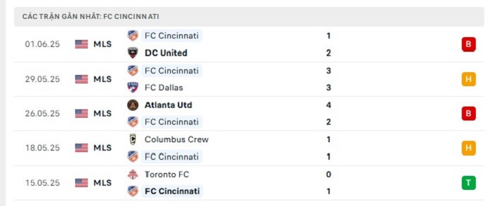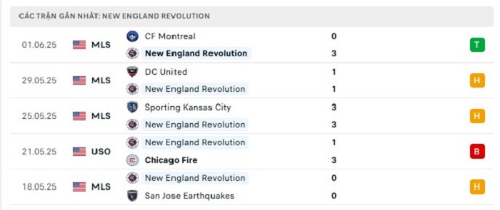 Phong độ gần đây New England Revolution vs FC Cincinnati