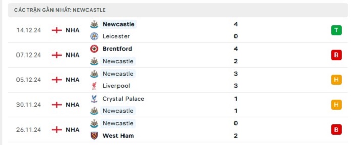 Bảng bóng đá trận đấu Newcastle United vs Brentford