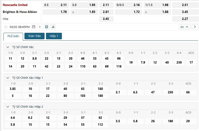 Soi kèo tỷ số Newcastle United vs Brighton