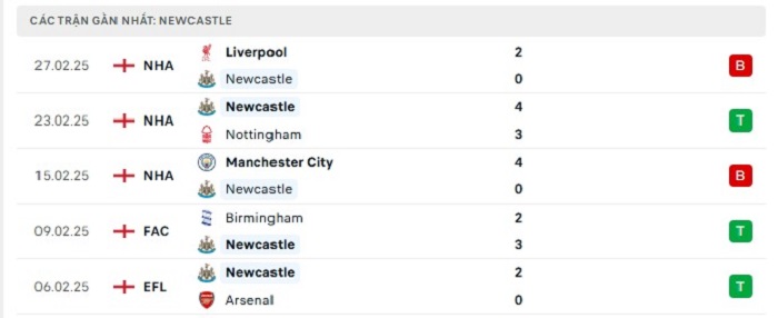 - Phong độ Newcastle United