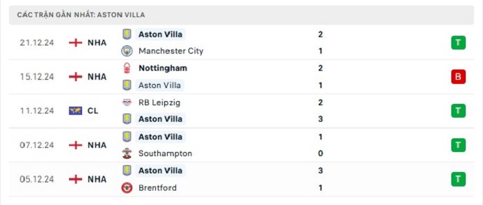 Bảng bóng đá trận đấu Newcastle vs Aston Villa