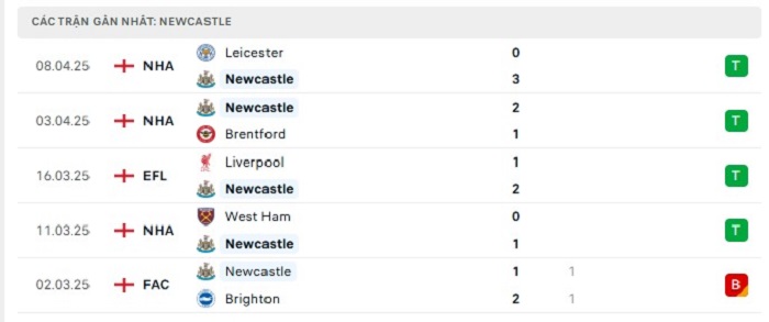 - Phong độ Newcastle