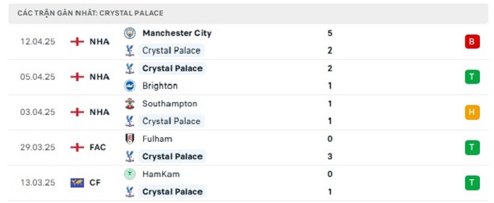 - Phong độ Crystal Palace